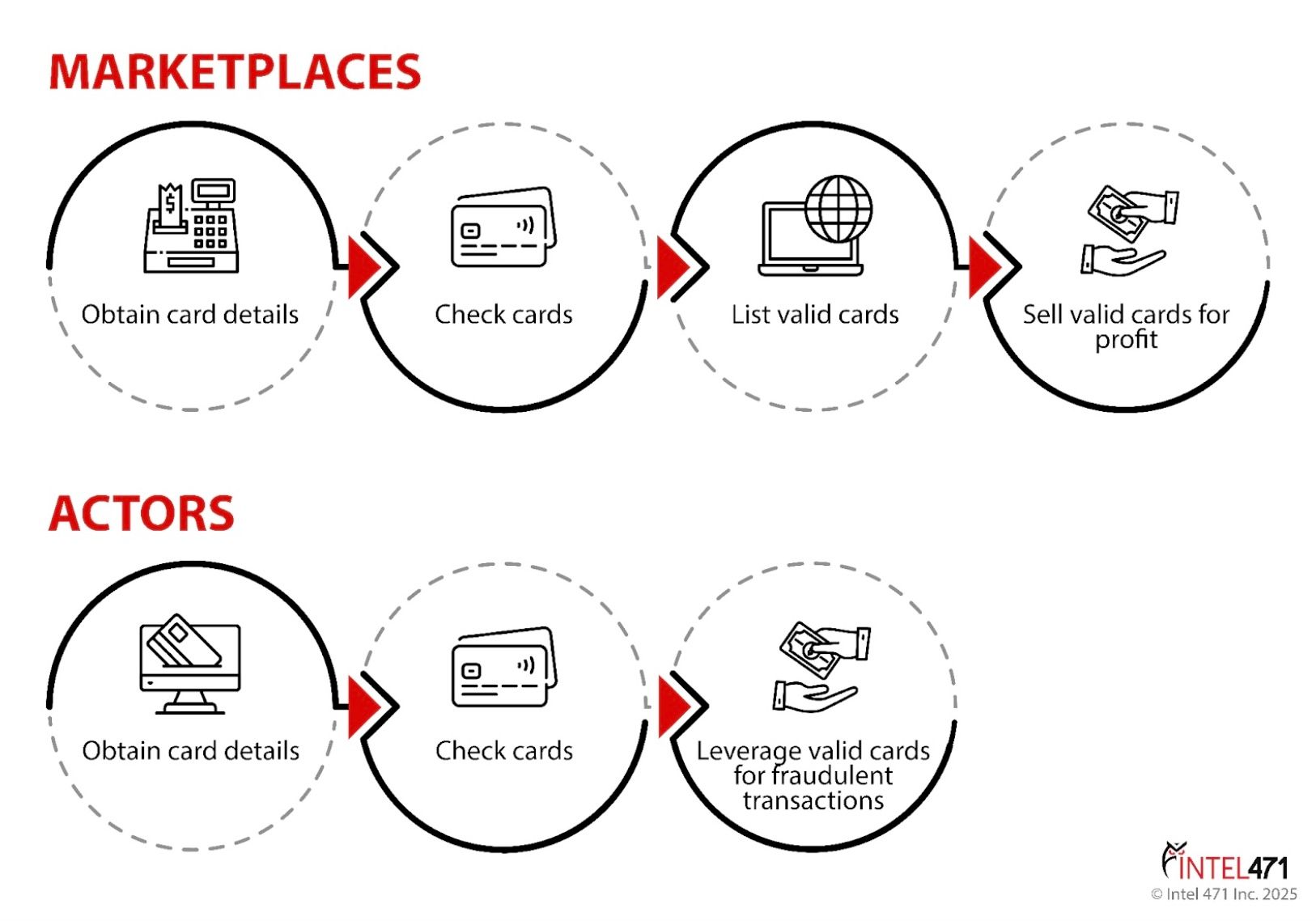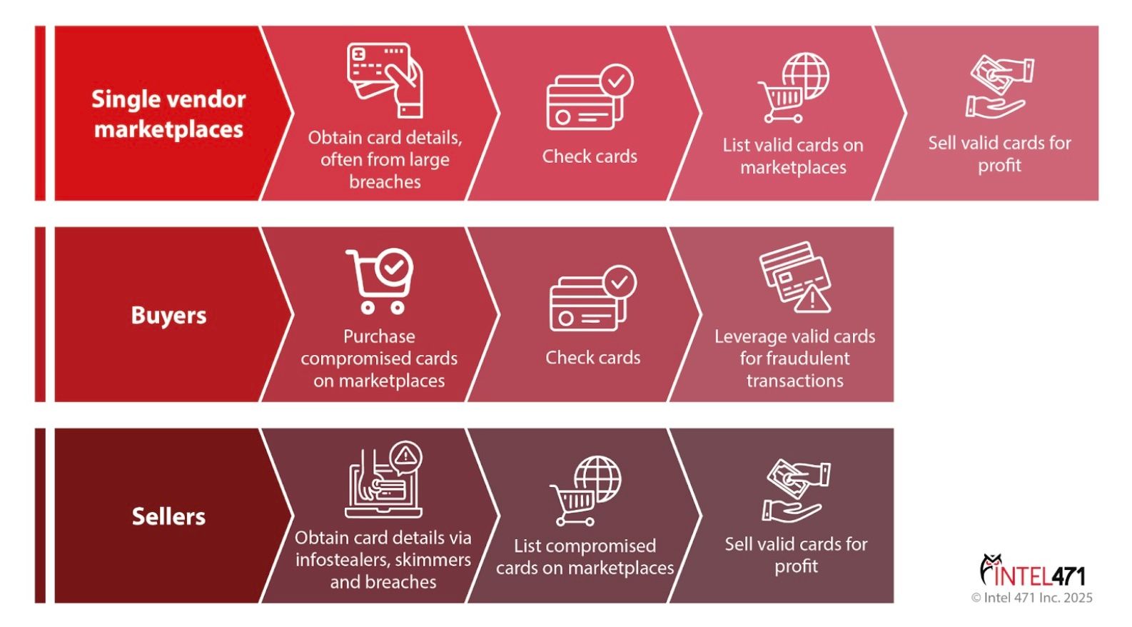 The image depicts the position of dump shops in the credit card fraud ecosystem Aug. 27, 2025.