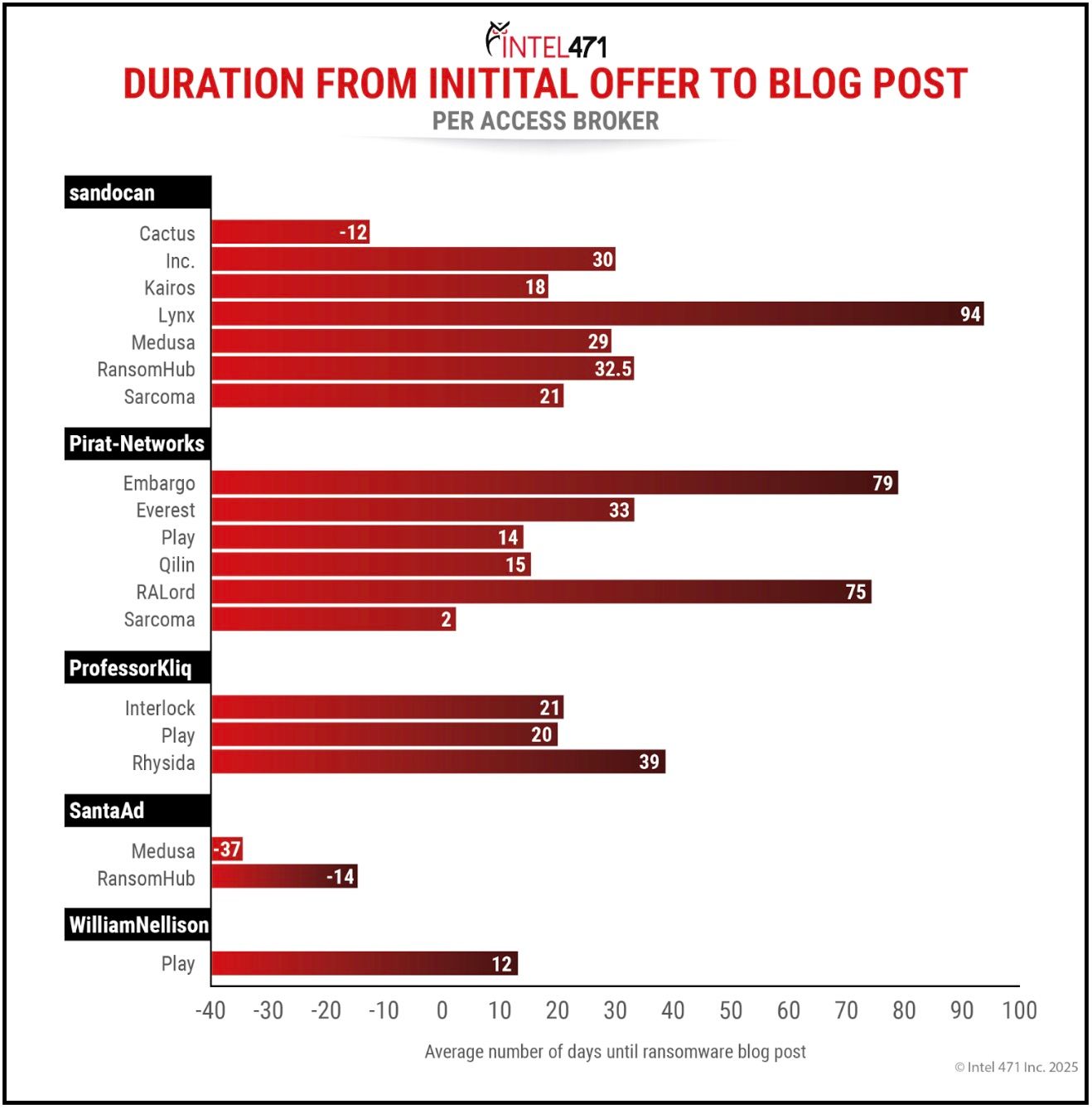 From June 2024 to May 2025, we observed and reported 4,878 claims of IABs offering to sell compromised credentials and/or alleged unauthorized access to networks or systems. We identified at least 70 possible correlations between these offers and victims ransomware or extortion groups claimed. The correlations were associated with 42 access vendors and 32 ransomware and data extortion groups. The smallest breach window between an IAB offer and ransomware group victim claim was two days. We also observed one case where a ransomware group claimed a victim that an access broker offered the same day. Additionally, we observed 12 victims ransomware groups claimed to compromise prior to being claimed by IABs in the underground. The average breach window between offering compromised access and adding a victim entity to a data leak blog was about 19 days.βββββο»Ώβο»Ώββββββο»Ώο»Ώβο»Ώβββββββββο»Ώββββββο»Ώββββββο»Ώβββββββο»Ώβο»Ώββββββο»Ώββββββο»Ώβββο»Ώββββο»Ώβββββββο»Ώο»Ώββββββο»Ώββββββββββο»Ώβββββββββββββββο»Ώβββββββββββο»Ώβββο»Ώβββο»Ώβββο»Ώβο»Ώβο»Ώββββο»Ώο»Ώββο»Ώο»Ώββββββο»Ώββο»Ώββββββββο»Ώββο»Ώβββο»Ώβο»Ώβο»Ώββββο»Ώββο»Ώβο»Ώββββββο»Ώββββββο»Ώβββο»Ώββββο»Ώββο»Ώβο»Ώβο»Ώβββο»Ώββββββββββββο»Ώο»Ώββο»Ώο»Ώββββββο»Ώββο»Ώββββββββο»Ώββο»Ώββββο»Ώο»Ώβββββββββββββο»Ώββββο»Ώο»Ώββο»Ώβββο»Ώο»Ώβββββββββο»Ώο»Ώββο»Ώβββο»Ώβββββββο»Ώβο»Ώββββββο»Ώββο»Ώβββββββο»Ώββββββββο»Ώο»Ώββο»Ώββο»Ώβο»Ώβββββββββο»Ώο»Ώββββο»Ώβββββο»Ώβββο»Ώβββββββο»Ώβββο»Ώβββο»Ώββββο»Ώββο»Ώββββββββββββββββο»Ώββο»Ώβββββββο»Ώββββββββο»Ώββββββο»Ώβββο»Ώβββο»Ώββββο»Ώββββββο»Ώβββο»Ώβββο»Ώβββββββο»Ώβββββββο»Ώβο»Ώβββββββββο»Ώβββο»Ώβββο»Ώβο»Ώβο»Ώβββο»Ώβββο»Ώβββββββο»Ώο»Ώβββββββο»Ώβββο»Ώο»Ώβββο»Ώβο»Ώβο»Ώβο»Ώβββββββο»Ώβββββββο»Ώο»Ώββο»Ώβββββββββο»Ώβββββββββο»Ώββββββββο»Ώββββββββββο»Ώβββββββο»Ώββββββββο»Ώο»Ώβββο»Ώβββββο»Ώβββββββο»Ώβο»Ώβββββββββο»Ώβο»Ώβββββββββο»Ώβββο»Ώβββββββββββββββββββο»Ώβββββο»Ώβο»Ώβββο»Ώβββββββο»Ώβο»Ώβο»Ώβββββββββββο»Ώβββο»Ώβββββββο»Ώββββββββο»Ώββο»Ώβββββββββο»Ώβββββββββββββο»Ώβββο»Ώβββββββο»Ώββββββββο»Ώο»Ώβββο»Ώβββββο»Ώβββββββο»Ώβο»Ώβββββββββο»Ώβο»Ώβββββββββο»Ώβββο»Ώβββο»Ώβββββββο»Ώβββββββο»Ώβββο»Ώβο»Ώβο»Ώβββο»Ώβββο»Ώβο»Ώβο»Ώβββο»Ώβββο»Ώβββββββο»Ώβββο»Ώβββββββο»Ώββββββββο»Ώββββο»Ώββββββββββο»Ώββββββο»Ώββββββββο»Ώββββββο»Ώββββββββο»Ώο»Ώβββο»Ώβββββο»Ώβββββββο»Ώβο»Ώβββββββββο»Ώβο»Ώβββββββββο»Ώβββο»Ώβββο»Ώβββο»Ώβββββββο»Ώβββο»Ώβββββββο»Ώβββββββββββο»Ώβββο»Ώβββο»Ώβο»Ώβββββο»Ώβββο»Ώβββββββο»Ώββββββββο»Ώββο»Ώβββββββο»Ώβββο»Ώβββο»Ώο»Ώο»Ώβββββββββο»Ώβο»Ώβββββββββο»Ώββββο»Ώββο»Ώο»Ώββββββο»Ώβββο»Ώβββο»Ώβββο»Ώβο»Ώβββββο»Ώβο»Ώβββββββββο»Ώβββββββββββο»Ώββββββββββββο»Ώββο»Ώββββββββο»Ώββο»Ώβββο»Ώβο»Ώβο»Ώββββο»Ώββο»Ώβο»Ώββββββο»Ώββββββο»Ώβββο»Ώββββο»Ώββο»Ώβο»Ώβο»Ώβββο»Ώββββββββββββο»Ώο»Ώβββββββββββββο»Ώο»Ώββββο»Ώβββββο»Ώβββο»Ώβββββββο»Ώβββο»Ώβββο»Ώββββο»Ώββο»Ώββββββββββββββββο»Ώββο»Ώβββββββο»Ώββββββββο»Ώββββββο»Ώβββο»Ώβββο»Ώββββο»Ώββββββο»Ώβββο»Ώβββο»Ώβββββββο»Ώβββββββο»Ώβο»Ώβββββββββο»Ώβββο»Ώβββββββο»Ώβββο»Ώβββο»Ώβββββββο»Ώο»Ώβββββββο»Ώβββο»Ώο»Ώβββο»Ώβββββο»Ώβββββββο»Ώβββββββο»Ώο»Ώββο»Ώβββββββββο»Ώβββββββββο»Ώββββββββο»Ώββββββββββο»Ώβββββββο»Ώββββββββο»Ώο»Ώβββο»Ώβββββο»Ώβββββββο»Ώβο»Ώβββββββββο»Ώβο»Ώβββββββββο»Ώβββο»Ώβββββββββββββββββββο»Ώβββββο»Ώβο»Ώβββο»Ώβββββββο»Ώβο»Ώβο»Ώβββββββββββο»Ώβββο»Ώβββββββο»Ώββββββββο»Ώββο»Ώβββββββββο»Ώβββββββββββββο»Ώβββο»Ώβββββββο»Ώββββββββο»Ώο»Ώβββο»Ώβββββο»Ώβββββββο»Ώβο»Ώβββββββββο»Ώβο»Ώβββββββββο»Ώβββο»Ώβββο»Ώβββββββο»Ώβββββββο»Ώβββο»Ώβο»Ώβο»Ώβββο»Ώβββο»Ώβο»Ώβο»Ώβββο»Ώβββο»Ώβββββββο»Ώβββο»Ώβββββββο»Ώββ