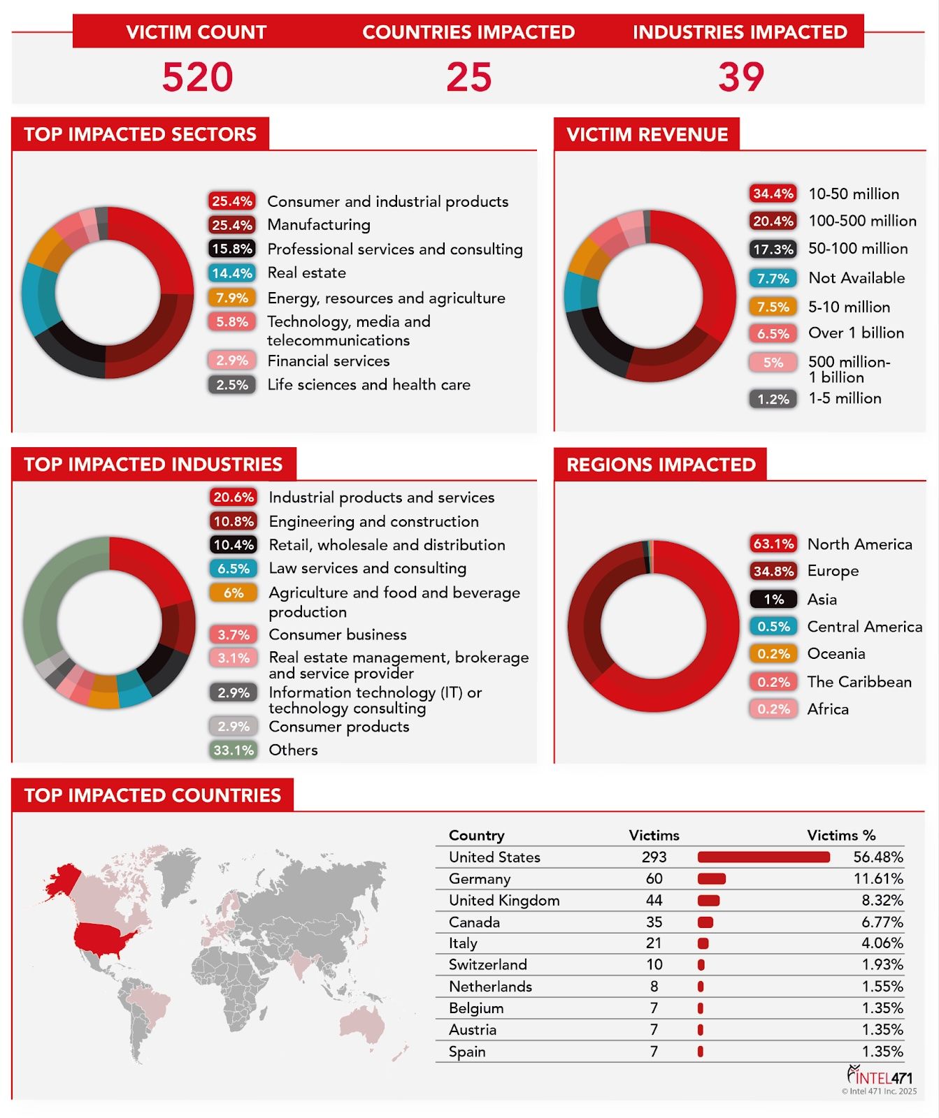 The image depicts an Intel 471-generated graph of the Black Basta groupβs ransomware activity from April 2022 to January 2025.